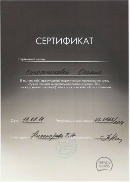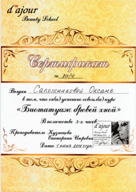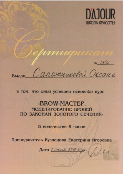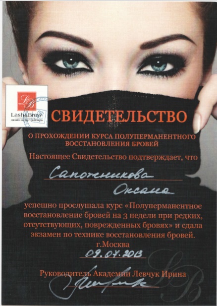 "Мне очень понравились брови, которые сделала мне Оксана, и так как я сама мастер по бровям,
