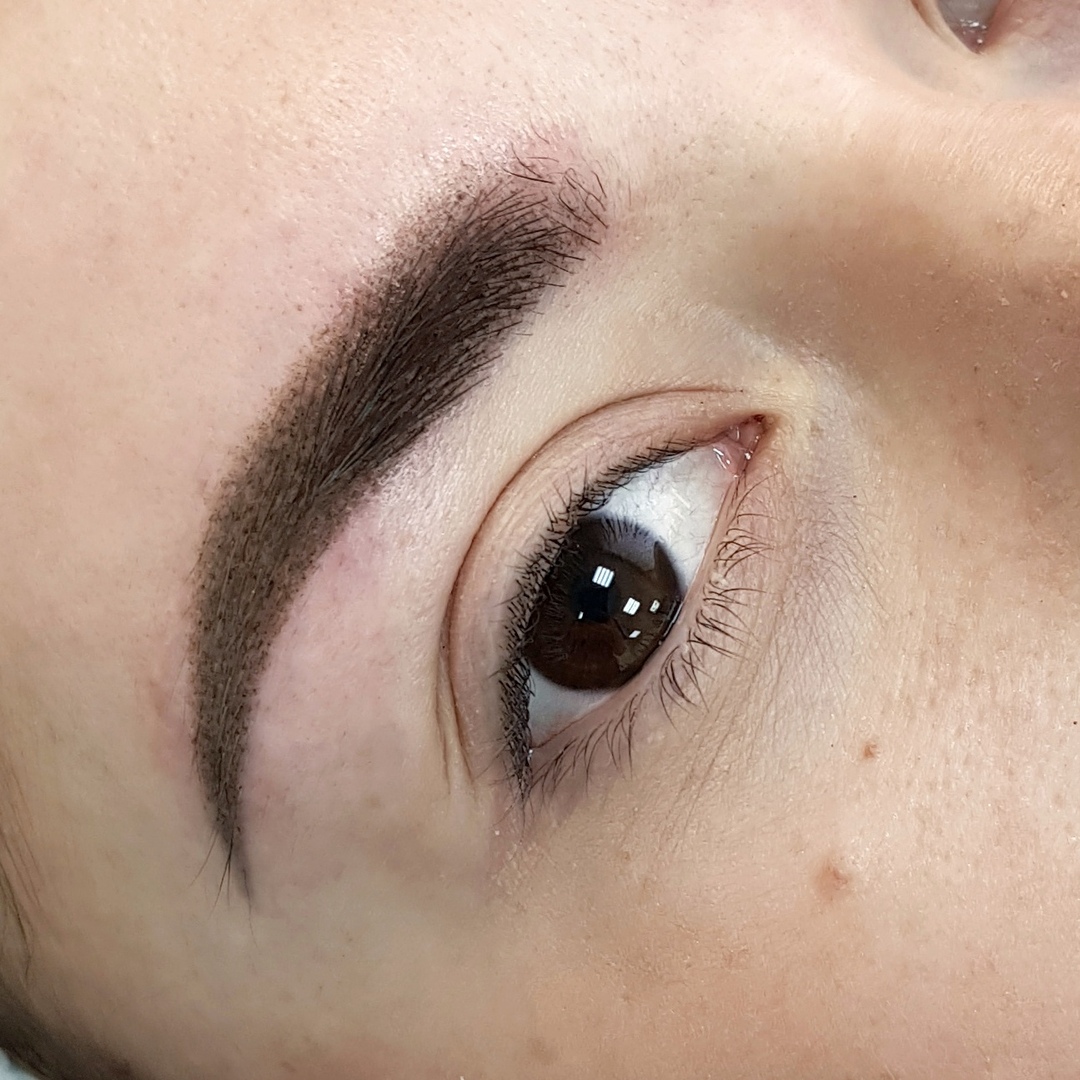 Фото сразу после процедуры. При заживлении брови станут светлее и  прозрачнее
